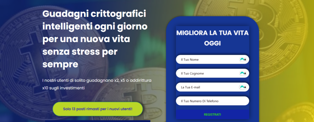 Libera te stesso dall’alto costo di ingresso nel mondo degli investimenti! Non è necessario spendere decine di migliaia di euros per capire il trading di criptovalute, come funziona e cosa devi fare per evitare perdite. Ti offriamo l’opportunità di investire anche solo qualche centinaio di euros e trasformarlo in un’attività redditizia.
